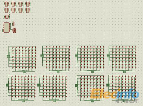 經(jīng)過驗(yàn)證并不完善,將此仿真在此修改,改進(jìn)后的仿真圖刪除了ULN2803,解決了之前在上位機(jī)上點(diǎn)亮一個(gè)LED點(diǎn)陣上卻點(diǎn)亮了一整排的問題,同時(shí)使其他的動(dòng)畫能看出效果。反復(fù)測(cè)試后,晶振頻率定在3*11.0592MHz,修改了定時(shí)器初值,加快刷新,波特率依舊是57600。