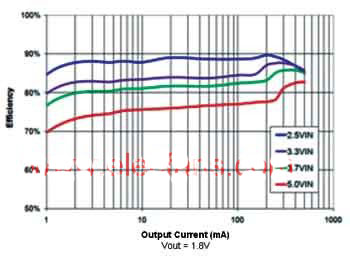 這種調(diào)節(jié)的缺點是模塊的輸出電壓固定,然而可變輸出電壓又會導致無源元件的匹配不平衡。因而,可以提供具有一定輸出電壓的不同模塊來解決問題。首先推出的模塊的輸出電壓為1.8V,Vin為2.3~5.5V。這一電壓范圍是單一可充電電池、AA和AAA雙電池盒,以及單一3V鋰離子電池的理想選擇。