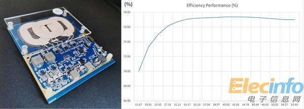 圖一:伏達(dá)車載無線充參考設(shè)計NVTREF8040Q及實測充電效率曲線