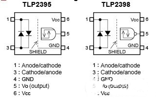 PLC既可接受多用于日本境內(nèi)的漏型邏輯輸入,也可接受多用于日本境外的源型邏輯輸入。隨著全球化進(jìn)程的推進(jìn),電橋電路正不斷將光電耦合器的上行比特流作為PLC輸入接口,從而為漏型及源型邏輯提供支持。全新光電耦合器分為緩沖邏輯“TLP2395”和反向邏輯“TLP2398”兩種類型,可通過(guò)以反向并聯(lián)方式結(jié)合兩個(gè)LED來(lái)為漏型及源型邏輯提供支持,進(jìn)而省去電橋電路。由于存在單個(gè)電路板包含多個(gè)電橋電路的情況,因此采用新款光電耦合器有助于縮小電路體積、降低功耗和成本。