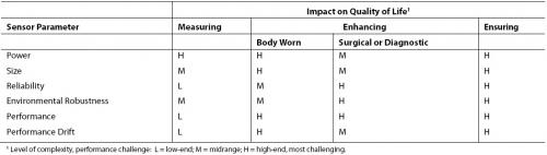 表1通過(guò)一些相對(duì)品質(zhì)因數(shù)來(lái)比較不同類型生活品質(zhì)應(yīng)用的各種特性的復(fù)雜度。即便是要求相對(duì)較低的測(cè)量設(shè)備,超低功耗、小尺寸和溫度/沖擊/振動(dòng)影響抑制能力的組合,也使得這些應(yīng)用的需求遠(yuǎn)遠(yuǎn)高于消費(fèi)電子驅(qū)動(dòng)的簡(jiǎn)單傳感器需求。